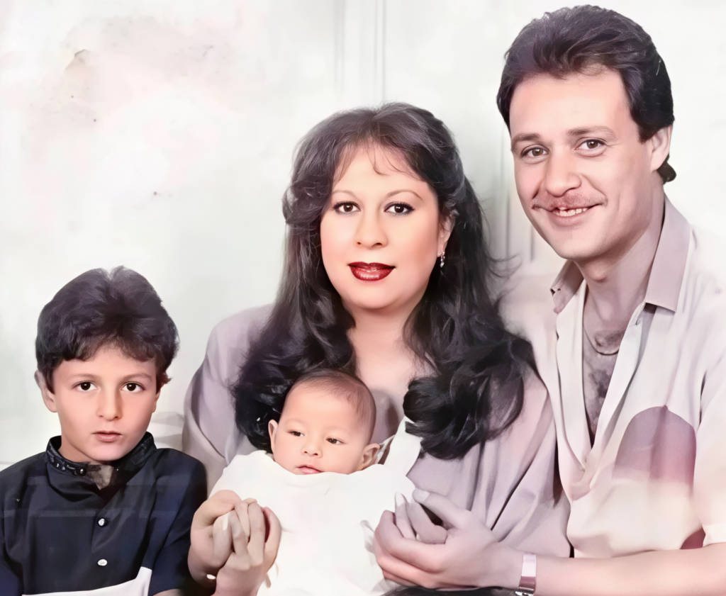 سمية الألفي مع زوجها الراحل الفنان فاروق الفيشاوي وطفليهما أحمد وعمر