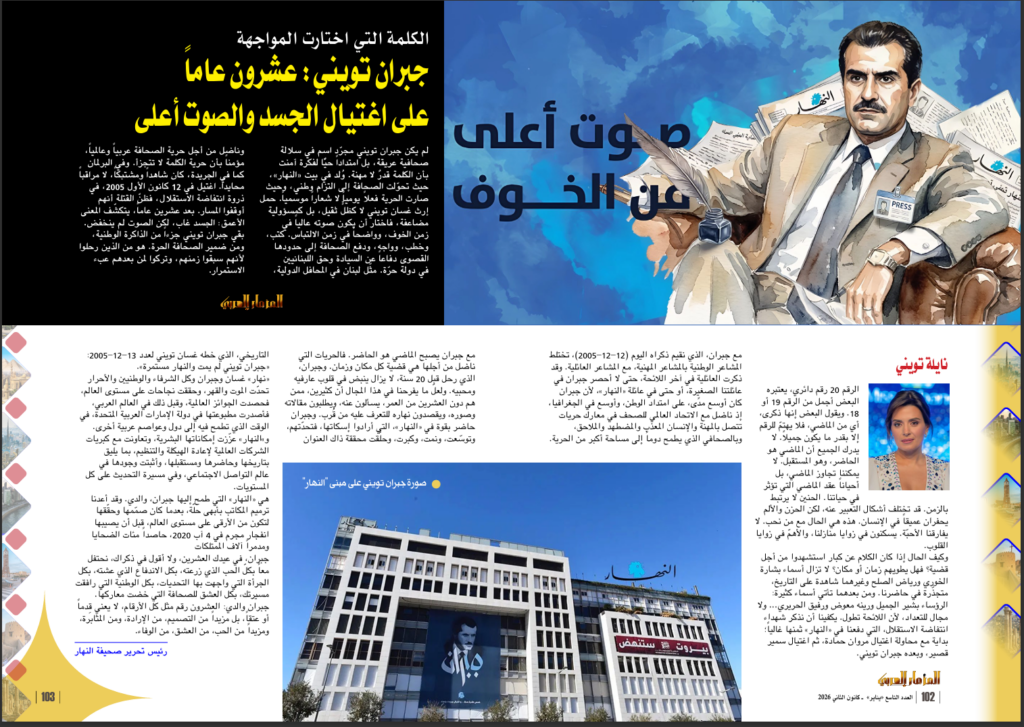 لم يكن جبران تويني مجرّد اسم في سلالة صحافية عريقة، بل امتداداً حيًّا لفكرة آمنت بأن الكلمة قدرٌ لا مهنة. وُلد في بيت «النهار»، حيث تحوّلت الصحافة إلى التزام وطني، وحيث صارت الحرية فعلاً يومياً لا شعاراً موسمياً. حمل إرث غسان تويني لا كظلٍّ ثقيل، بل كمسؤولية مضاعفة، فاختار أن يكون صوته عالياً في زمن الخوف، وواضحاً في زمن الالتباس. كتب، وخطب، وواجه، ودفع الصحافة إلى حدودها القصوى دفاعاً عن السيادة وحق اللبنانيين في دولة حرّة. مثّل لبنان في المحافل الدولية، وناضل من أجل حرية الصحافة عربياً وعالمياً، مؤمناً بأن حرية الكلمة لا تتجزأ. وفي البرلمان كما في الجريدة، كان شاهداً ومشتبكاً، لا مراقباً محايداً. اغتيل في 12 كانون الأول 2005، في ذروة انتفاضة الاستقلال، فظنّ القتلة أنهم أوقفوا المسار. بعد عشرين عاماً، يتكشّف المعنى الأعمق: الجسد غاب، لكن الصوت لم ينخفض. بقي جبران تويني جزءاً من الذاكرة الوطنية، ومن ضمير الصحافة الحرة. هو من الذين رحلوا لأنهم سبقوا زمنهم، وتركوا لمن بعدهم عبء الاستمرار.