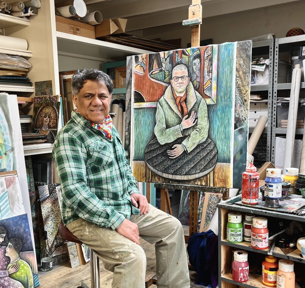 يتّحد الضوء بالعتمة لديه، لتنتصر حكاية الحياة، تتماسك الألوان المغايرة في لوحاته، فيتفوق الكبرياء على الألم، تتداخل خيوط الفراغات فيجتمع الجمال بلا قبح، يستهلّ البداية بآخر الحكاية، فتنطق حروفها فرحا، يكتفي بروح الملامح، فيكتمل النقصان بلا زيادة، يجذب الماضي إلى الحاضر، فيُظهر المستقبل من دون خفاء.